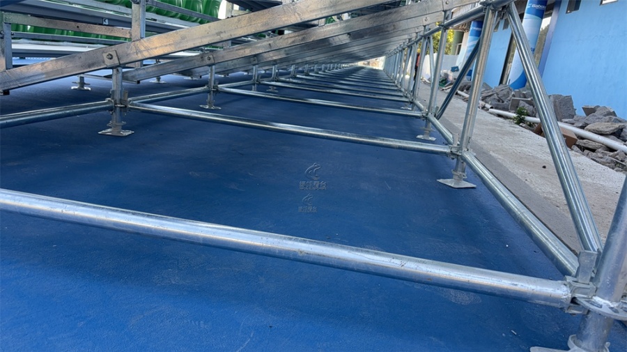 本看臺采用快速拼裝式看臺(模塊式安裝)。φ48X3焊管立柱,踏板采用鋁合金板,每平方米承重不低于500KG,首層從地面起,錯層高250mm(不含座椅),層寬750mm,左右兩側及尾層需加不銹鋼安全防護欄,高度1100mm.看臺支架鋼材表面采用鍍鋅處理;