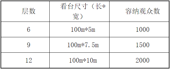 5、看臺(tái)層數(shù)有多種選擇,長(zhǎng)度可根據(jù)現(xiàn)場(chǎng)的尺寸確定,可容納觀眾數(shù)量大。